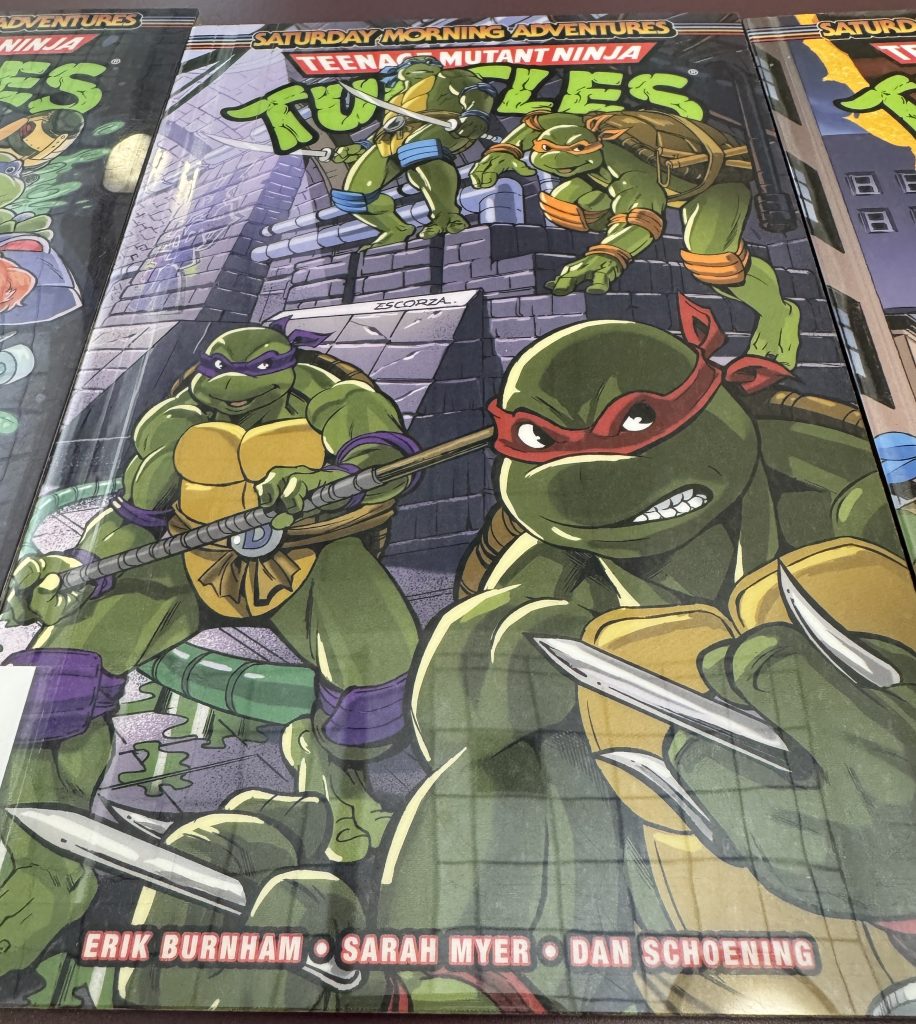 images freely found on the internet, via YouTube screen capture, or Photography of Teenage Mutant Ninja Turtle Books in the Library. 🙂